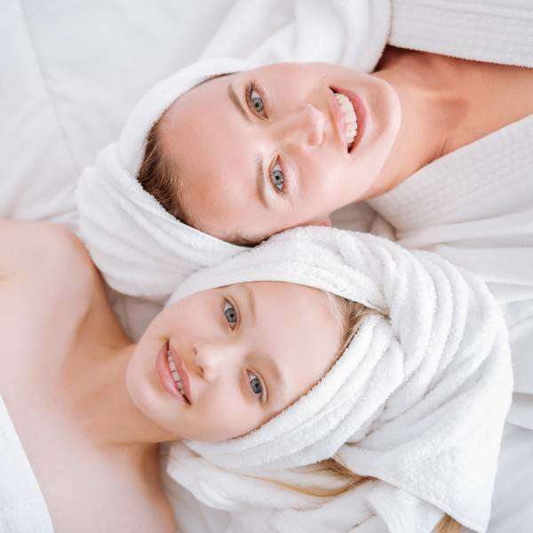 Nos cabines vous acceuillent à deux ou à trois pour un massage signature de 30 minutes et un soin du visage coup d'éclat de 30 minutes.