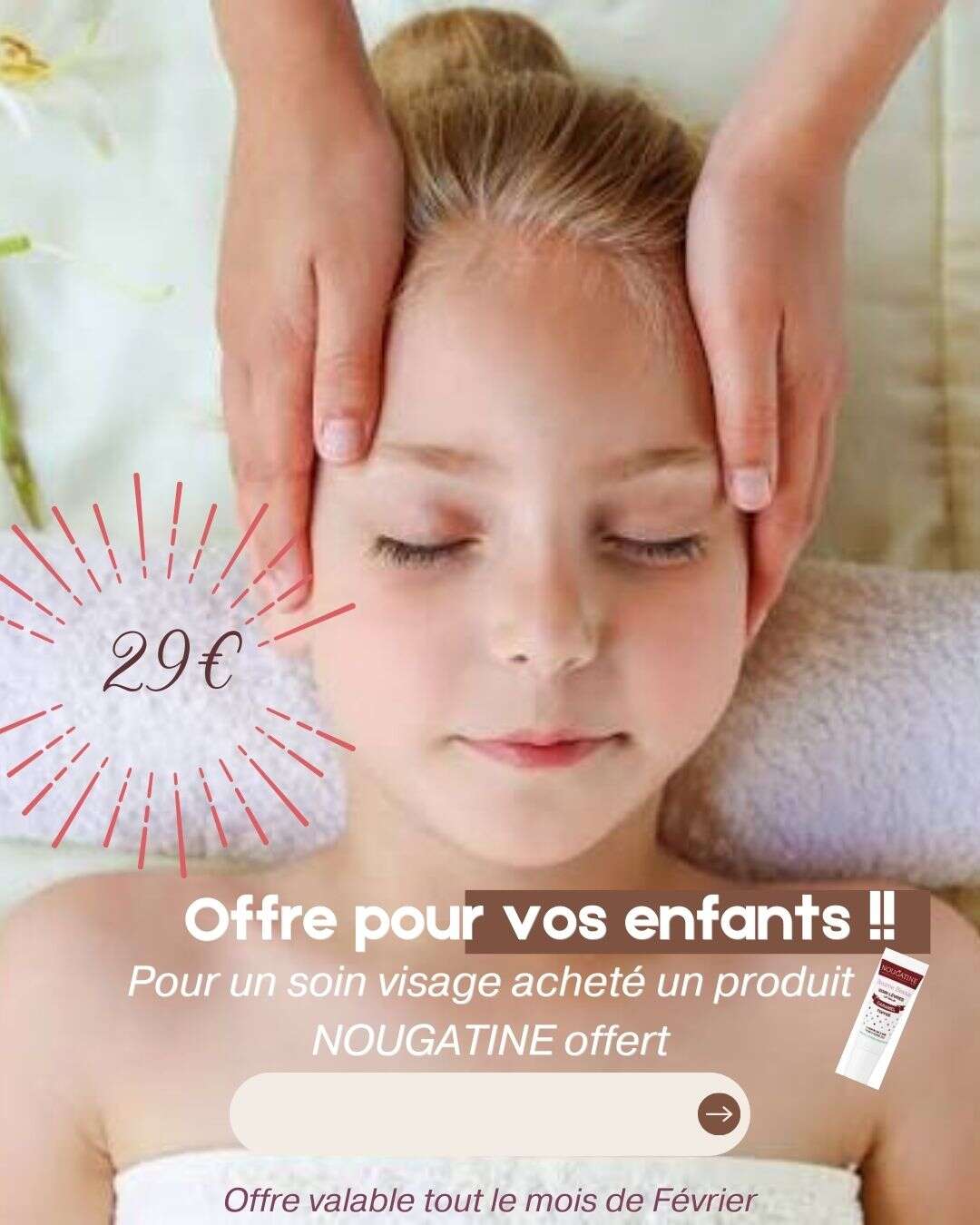 Le soin est réalisé avec les produits de la marque Nougatine, reconnus pour leurs formules douces, ludiques et adaptées aux plus jeunes.