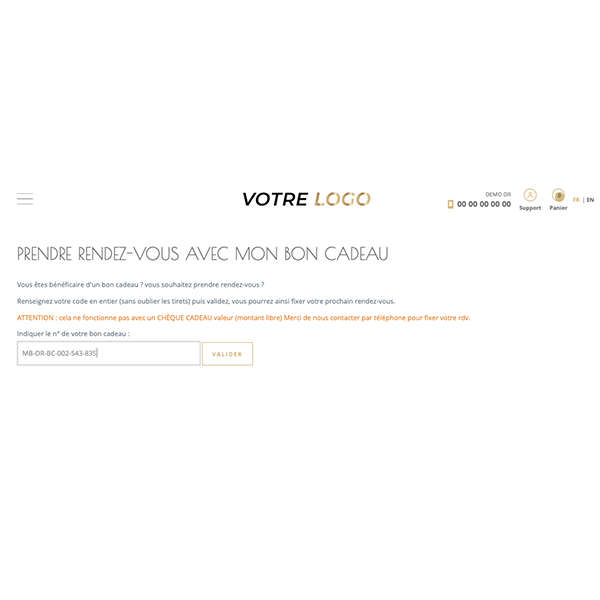 ÉTAPE 1 : Le client entre le code de son bon cadeau dans son espace client.